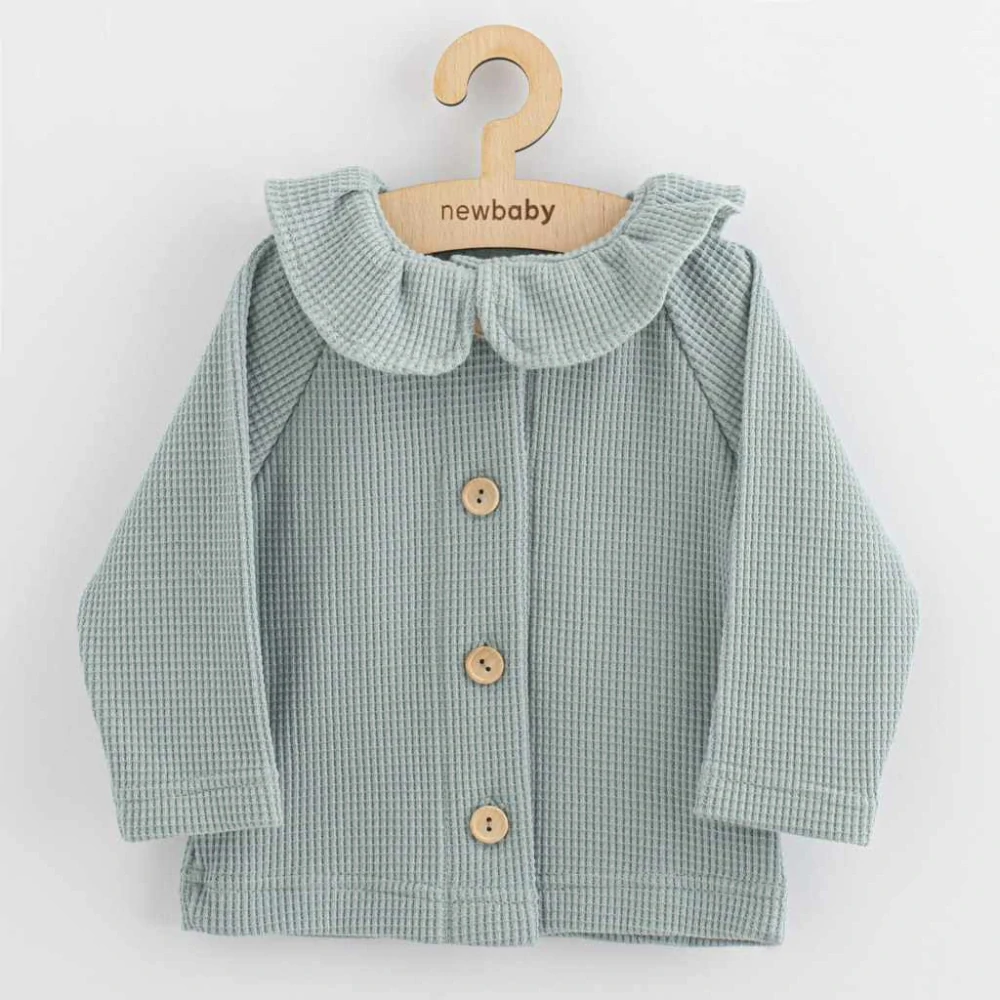 Elegantní bavlněný svetřík pro holčičky 9-12 měsíců! Stylový dívčí kabátek české značky New Baby s krásným límečkem a dřevěnými knoflíky nabízí praktické zapínání a celoroční pohodlí pro každodenní i speciální příležitosti.